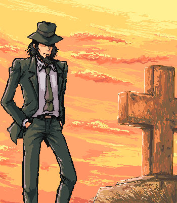 次元は墓の前で復讐を誓ったり、復讐後に報告したり